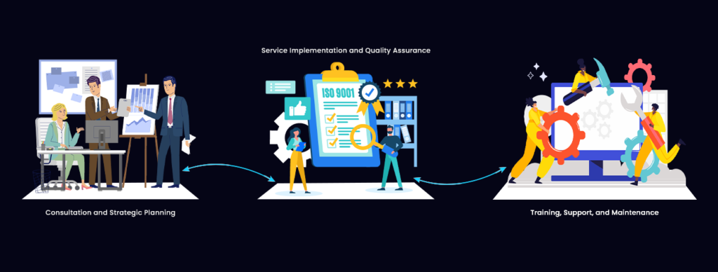 Our IT work process is known for its transparency, efficacy, and quality. By following well-structured steps, we position our strategies in line with your goals for smooth implementation, reliable performance, and scalable long-term results.